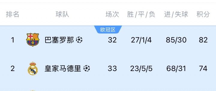 倘若下周第34轮比赛,巴萨继续取胜+皇马不胜(极端情况),这时巴萨的领先优势将突破12分,最早可提前4轮、在国家德比前锁定冠军。