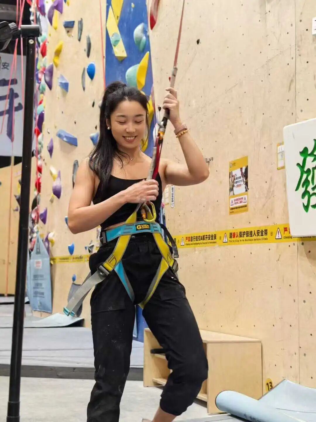 她仅用四根手指头就完成了空中180°转体,用上肢力量拿下了这条线路。许多网友都在赞叹她的肩背和手臂线条。